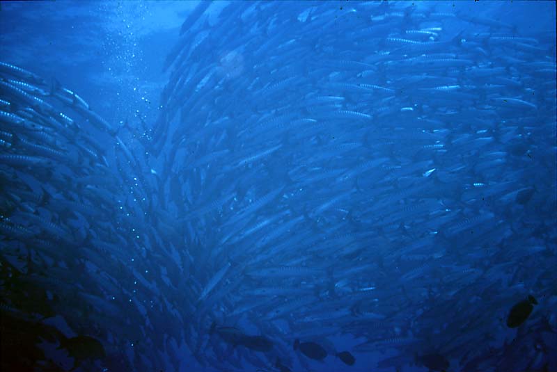 mindst en stime på 3-4000 store baracudaer i spiral eller lignende til, for at